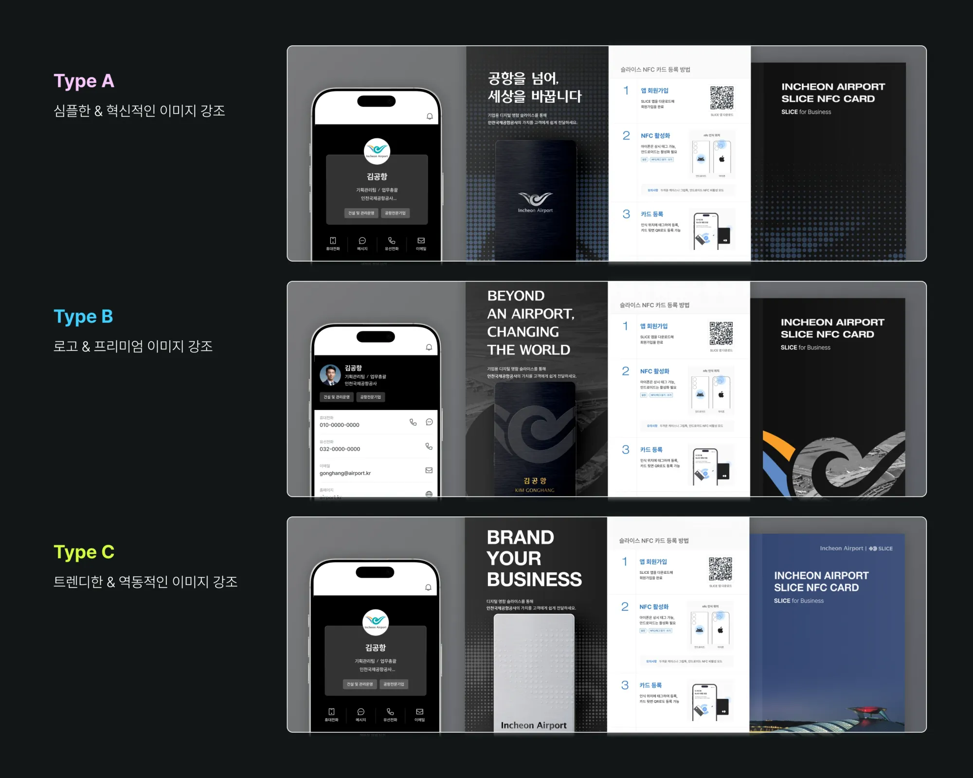: 디지털 전환 포인트, 디자인 풀 패키지 3 sets 제안 (NFC 카드, 명함 프로필 UI, 리플렛 포함)