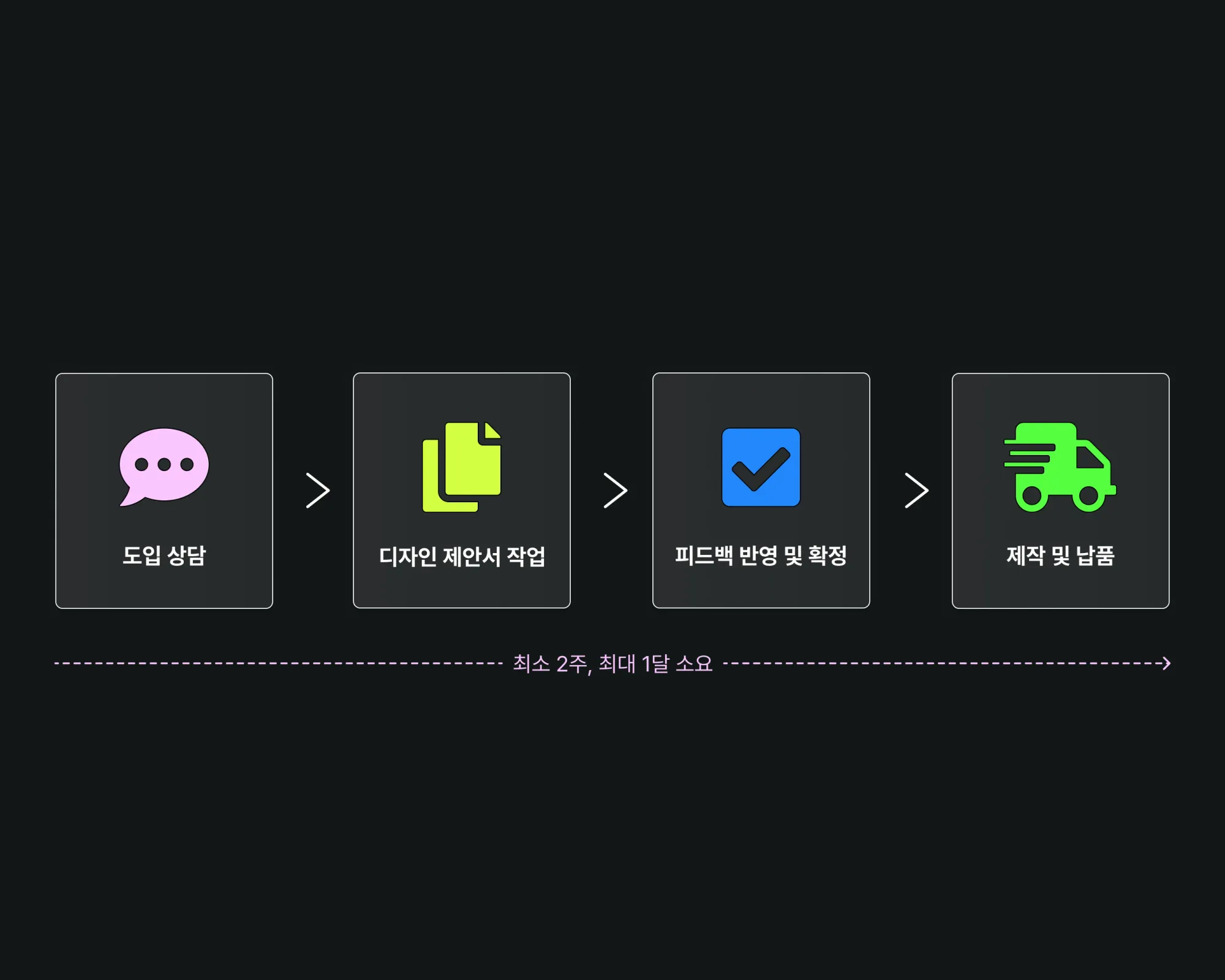 *전체 프로세스는 피드백 및 제작 요건에 따라 최소 2주~최대 한 달이 소요됩니다.