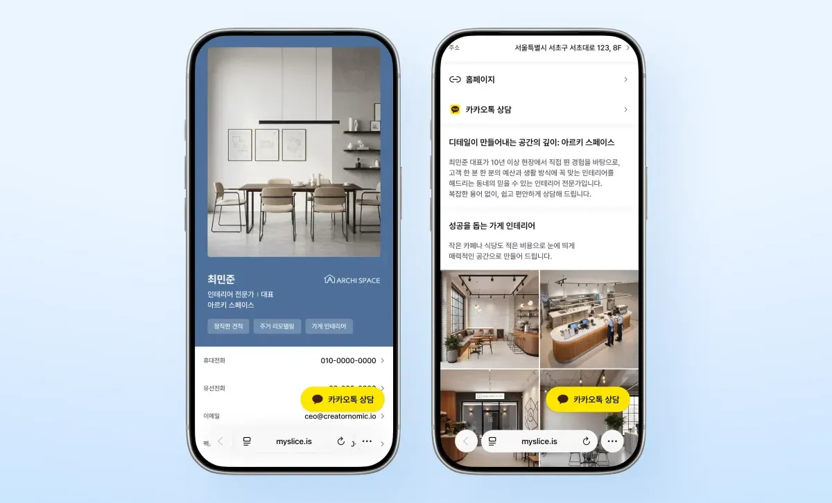 박람회에서 회사 홍보 + 상담 연결을 한 번에 끝내고 싶다면 슬라이스 명함을 사용해 보세요! 명함에 연락처부터 외부 링크, 사진 등 다양한 자료를 추가할 수 있어 종이 인쇄물 사용을 최소화 할 수 있어요.