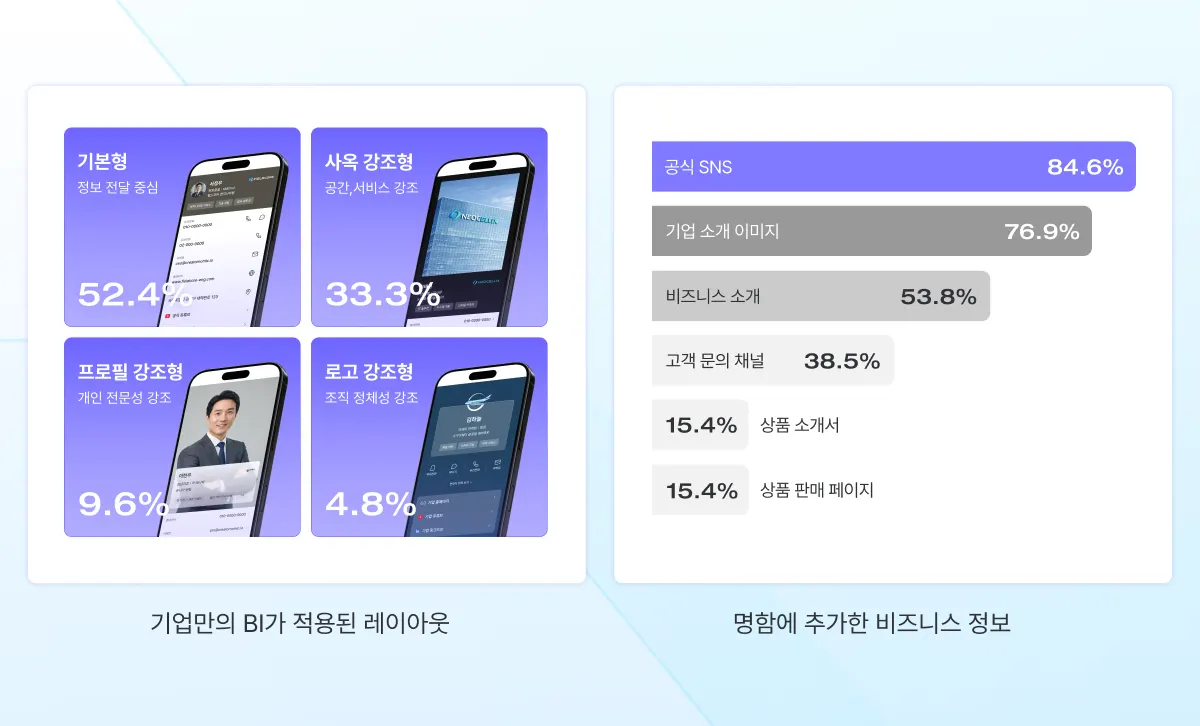 겉보기에는 같은 "디지털 명함 도입"처럼 보여도 어떤 조직은 브랜드 통일성이 중요하고, 어떤 조직은 종이 사용을 얼마나 줄일 수 있는가가 더 중요해요. 또 어떤 조직은 직원별 명함을 일괄 발급하고 체계적으로 관리하는 운영 구조가 핵심일 수도 있죠.