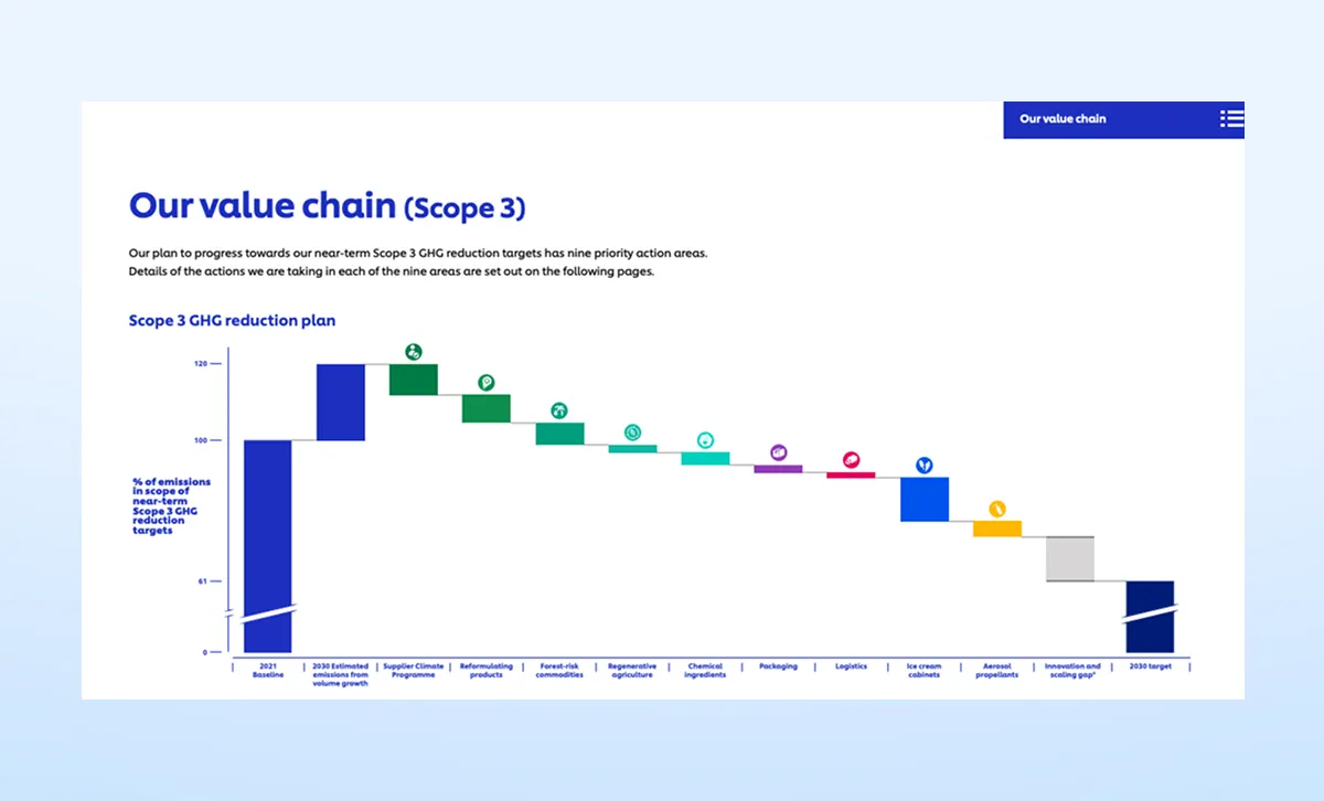 스코프 3에 대해서는 에너지·산업 배출과 산림·토지·농업 배출을 나눠 감축 목표를 제시하고, 공급업체 프로그램과 재생농업 확대를 통해 대응하고 있습니다. 유니레버 사례가 자주 언급되는 이유는, 스코프 3를 단순히 “협력사 배출량을 제출받는 일”로 보지 않기 때문입니다.