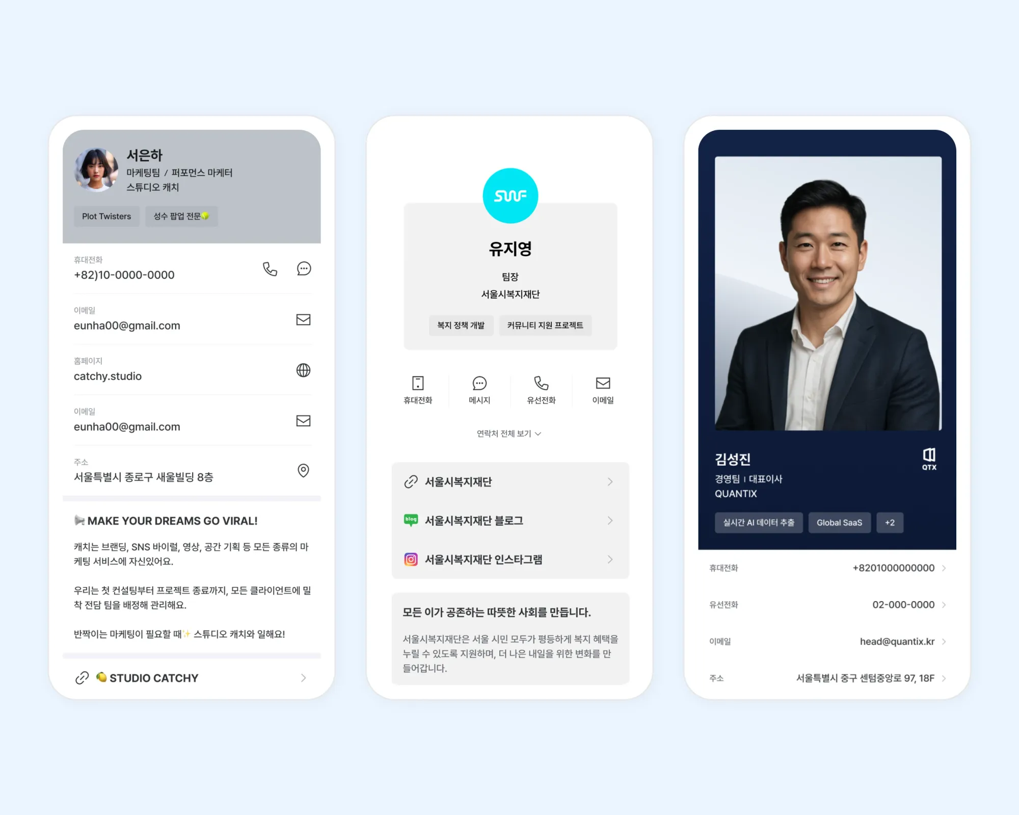 - 차별화 포인트 강조: SNS, 비즈니스 소개, 웹사이트 링크 등 상대방이 흥미로워할 콘텐츠 추가
