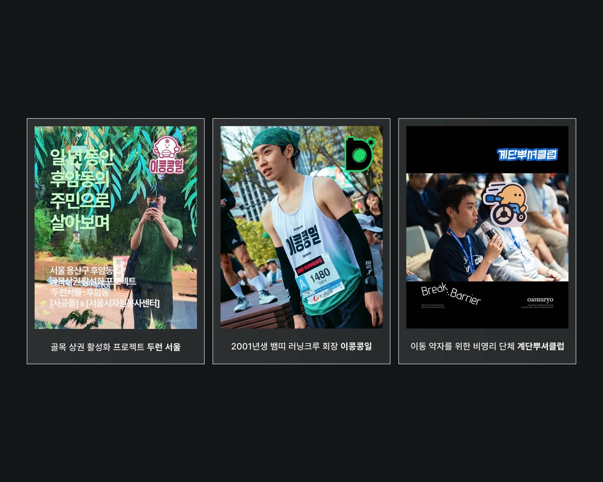 Q.일 외에도 이콩콩일 러닝 클럽부터 계단 뿌셔 클럽, 뉴스레터 발행까지 다양하게 활동하고 계신데 각각의 프로젝트를 어떻게 하게 되셨는지 궁금합니다.