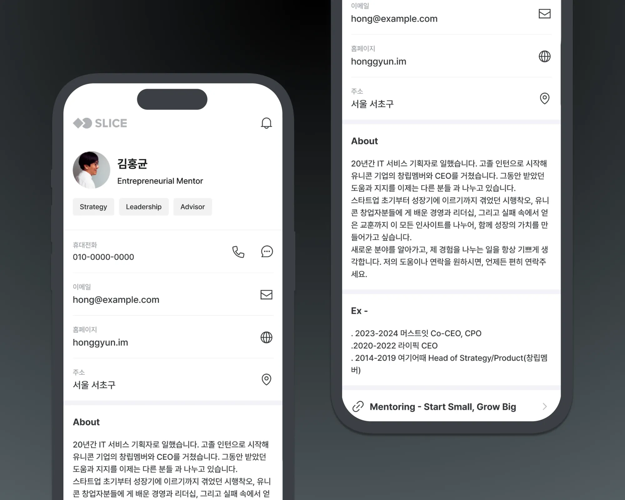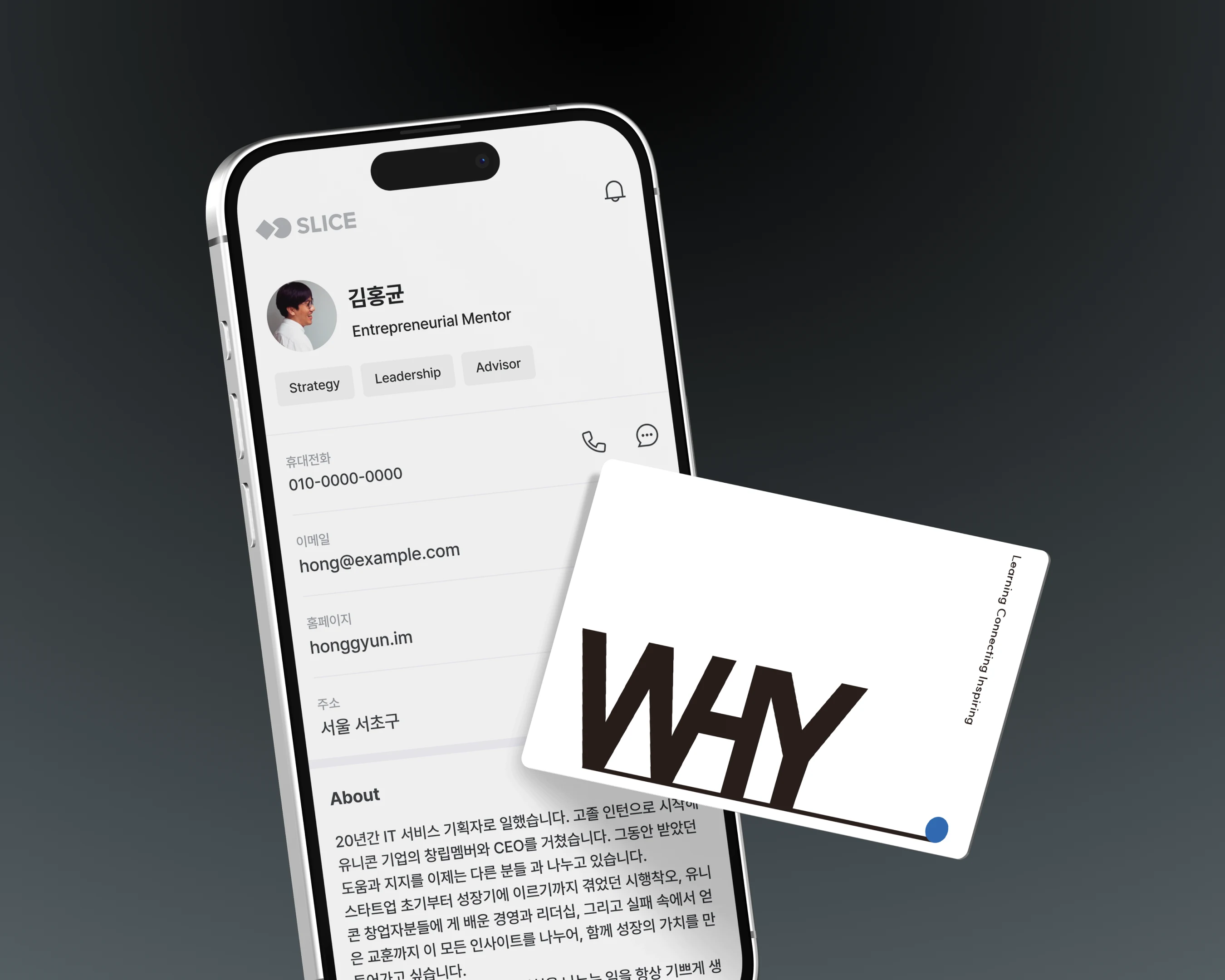 보통 명함 만들면 200장씩 주잖아요, 저는 직무도 자주 바뀌고 팀도 많이 바뀌고 그때마다 다시 만드는데 200장을 한 번도 다 써본 적이 없어요. 그리고 이게 개인 정보니까 항상 세절했거든요. 제가 그런 거 좀 예민해서 너무 귀찮았고, 그래서 항상 이런 게 있으면 참 좋겠다라는 생각을 원래부터 갖고 있었어요. 그러다가 작년부터 멘토링을 시작하면서 저도 소개를 해야 되는데 종이 명함을 만들기에는 좀 아깝더라고요. 그래서 찾다가 슬라이스를 발견하게 된 거죠.