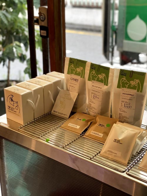 예를 들어 생수를 어떤 걸 사용하느냐에 따라 커피 맛이 달라지기도 하는데, 저희 커피는 어떤 물로 내렸을 때 가장 맛있는지 테스트해보기도 해요. "가게에서 마셨을 때는 이런 맛이 나는데 집에서 마실 땐 이런 맛이 안 나네" 싶을 때가 많잖아요. 그런 궁금증을 해소해 줄 수 있는 것들이나 재미를 줄 수 있는 요소들도 고민해요.