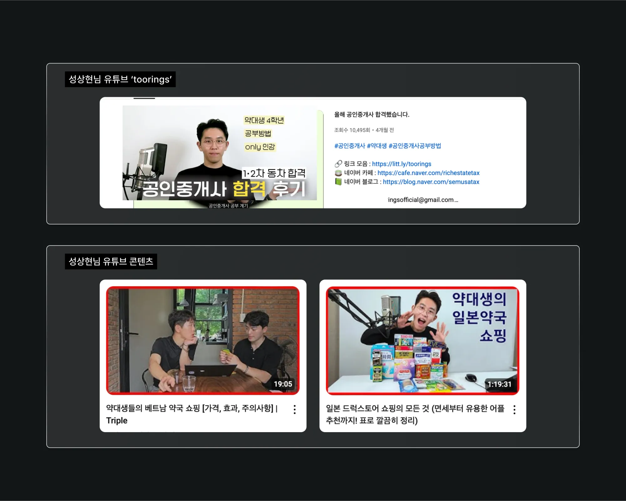 : 학업 때문에 제약이 많았어요. 중간고사 바로 다음 날이 공인중개사 시험이라 일정상 불리한 점도 있었고요. 그래도 졸업 후에 직장 생활 하면서 자격증 따는 게 더 어려울 것 같아서 마음 굳게 먹고 열심히 공부했어요. 아쉽게도 첫 번째 시험은 실패했지만요. 이 경험을 바탕으로 다시 도전해서 두 번째 때 합격했어요. 정말 피나는 노력을 했죠. 실패담부터 재도전에 성공하기 까지의 과정을 담은 유튜브 영상도 올렸어요.