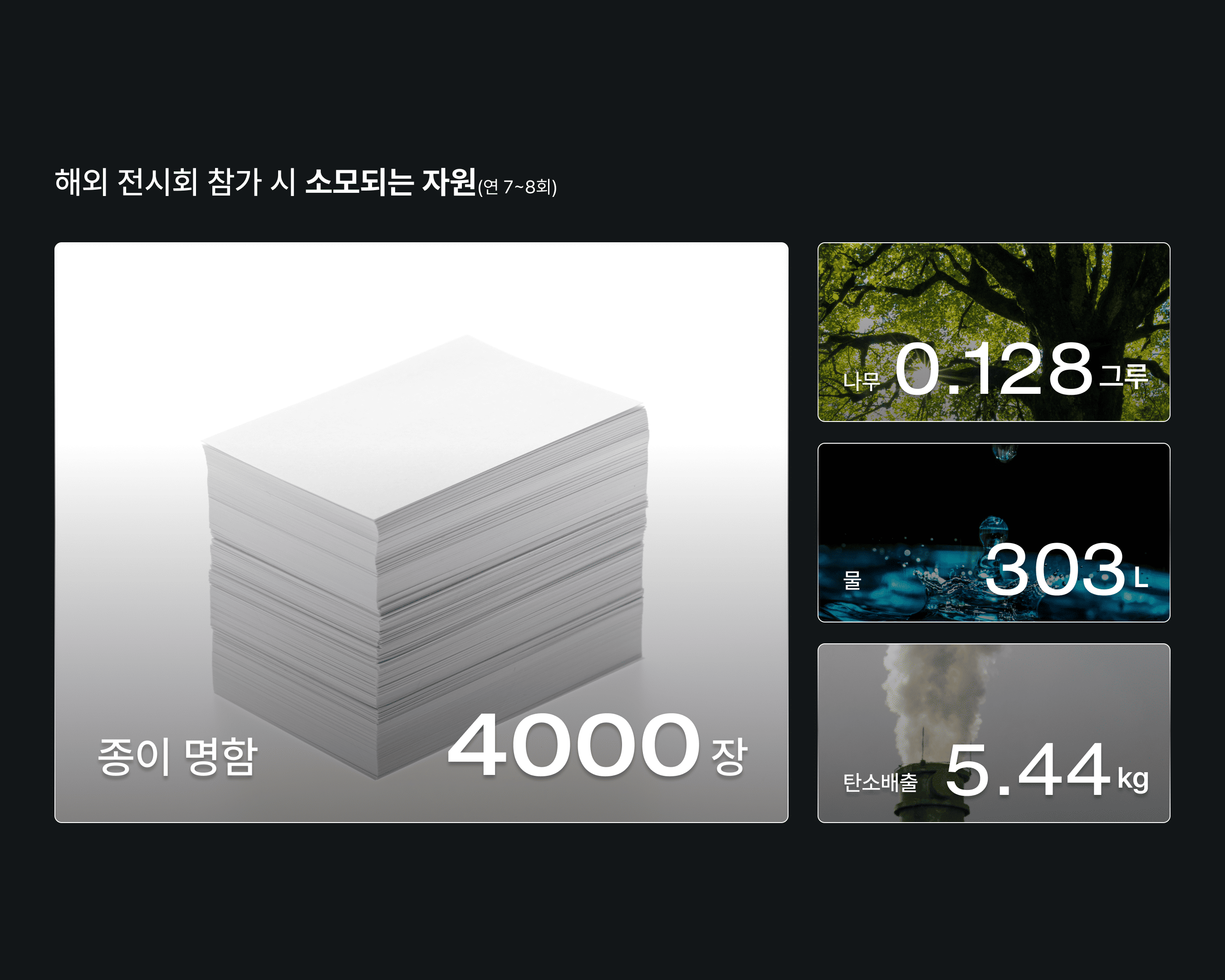 비용적인 측면으로 봤을 때에도 연간 4000장 정도 사용하던 종이 명함을 디지털 명함으로 바꾸면 30만 원 정도 줄일 수 있어요. 한번 쓰고 버려지는 게 아니다 보니 환경적으로도 훨씬 나은 선택이에요.