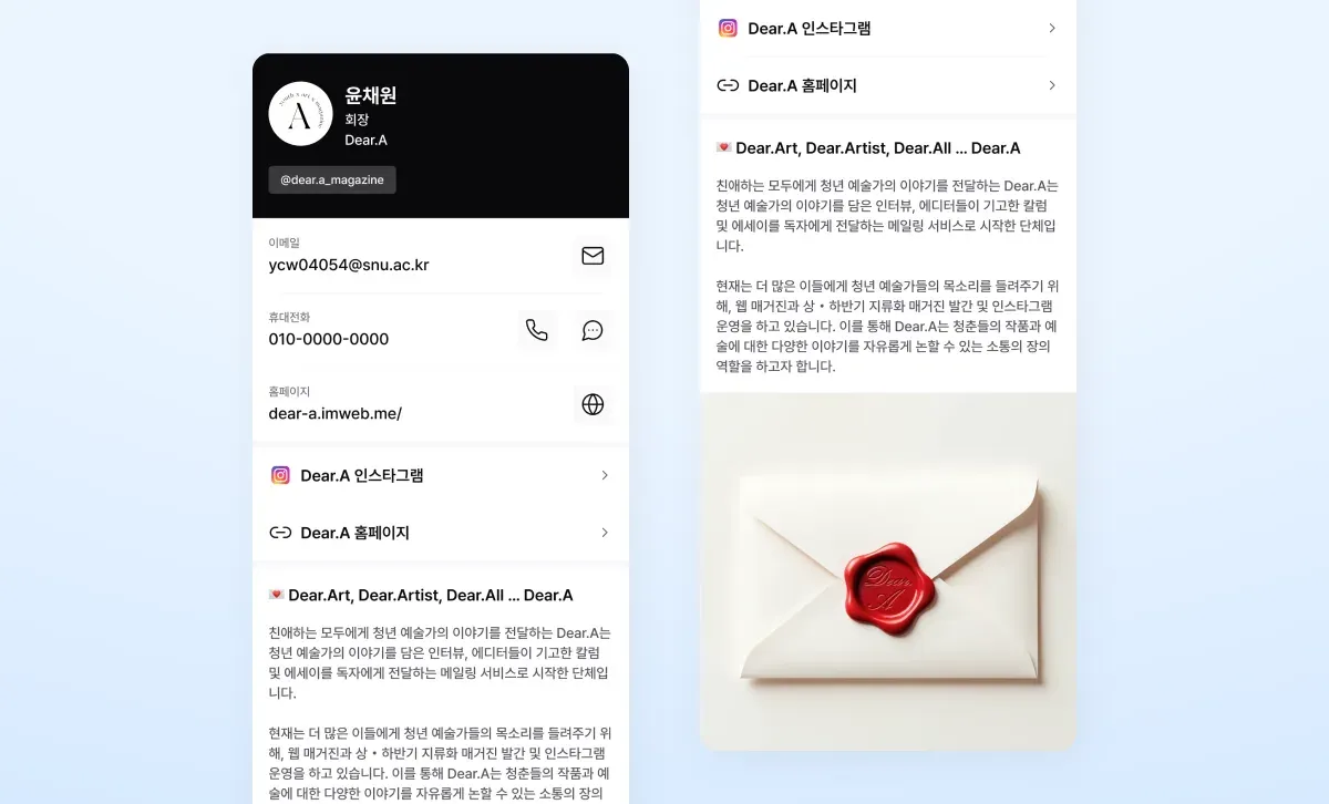 Dear.A처럼 예술과 콘텐츠를 중심으로 움직이는 매거진이나 편집팀이라면 디지털 명함을 이렇게 활용해 보세요!